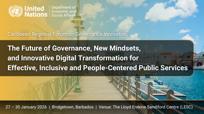The United Nations Department of Economic and Social Affairs (UN DESA), Division for Public Institutions and Digital Government (DPIDG), is organizing a Caribbean Regional Forum on Governance Innovation. The Regional Forum will be held 26 and 27 January 2026 in Bridgetown, Barbados. The forum is directed to Ministers, Senior Public Officers at the level of Permanent Secretaries, Directors, Director Generals, Heads of Agencies and Authorities and Chairman of Boards/Board of Directors in charge of public policy implementation.